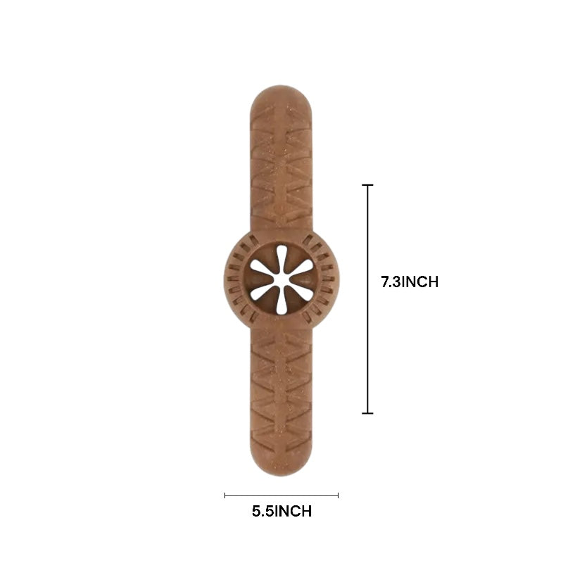 A strong chewable toy for dogs, that replicates the thrill of chewing table legs, chomping on TV remotes and biting off chunks of footwear. This dog toy is non-toxic, flexible, durable and washable by hand with cold water. All, with the bite-feel of things far more sinful.