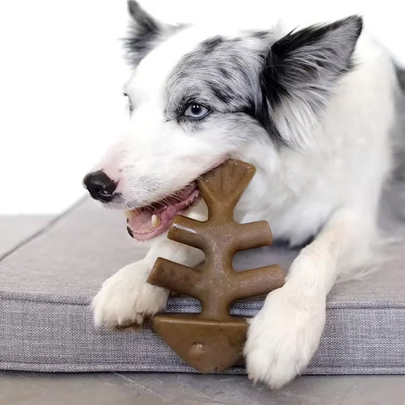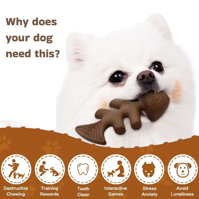 A strong chewable toy for dogs, that replicates the thrill of chewing table legs, chomping on TV remotes and biting off chunks of footwear. This dog toy is non-toxic, flexible, durable and washable by hand with cold water. All, with the bite-feel of things far more sinful.