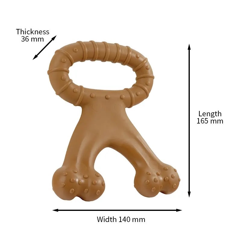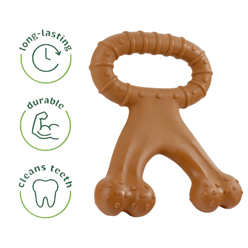 A strong chewable toy for dogs, that replicates the thrill of chewing table legs, chomping on TV remotes and biting off chunks of footwear. This dog toy is non-toxic, flexible, durable and washable by hand with cold water. All, with the bite-feel of things far more sinful.