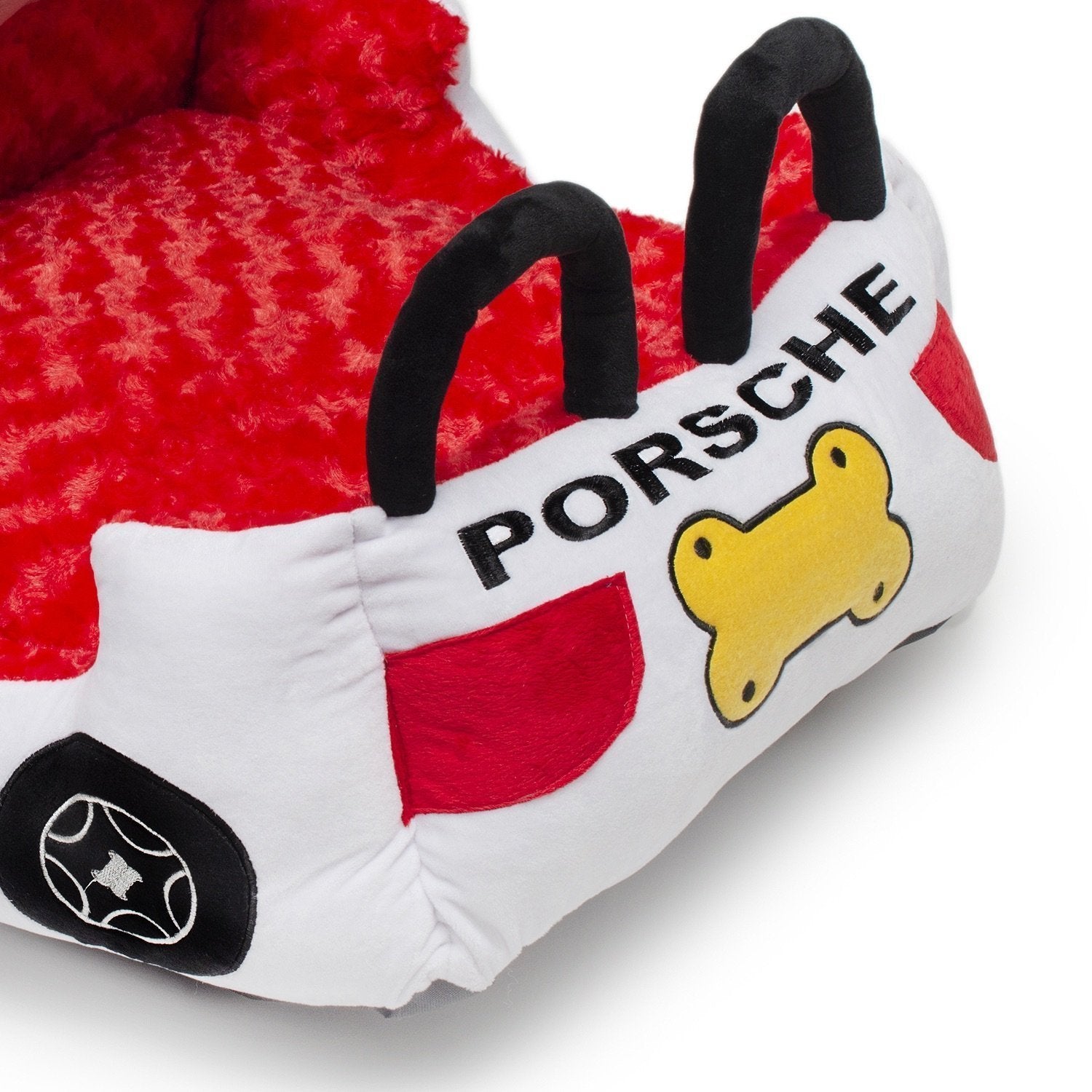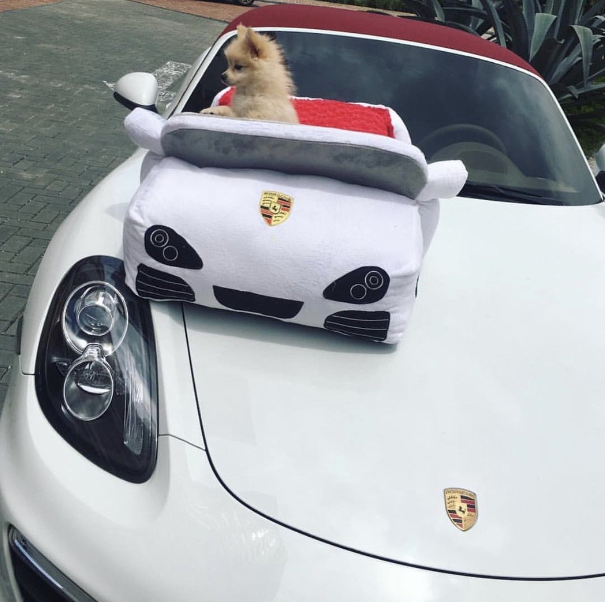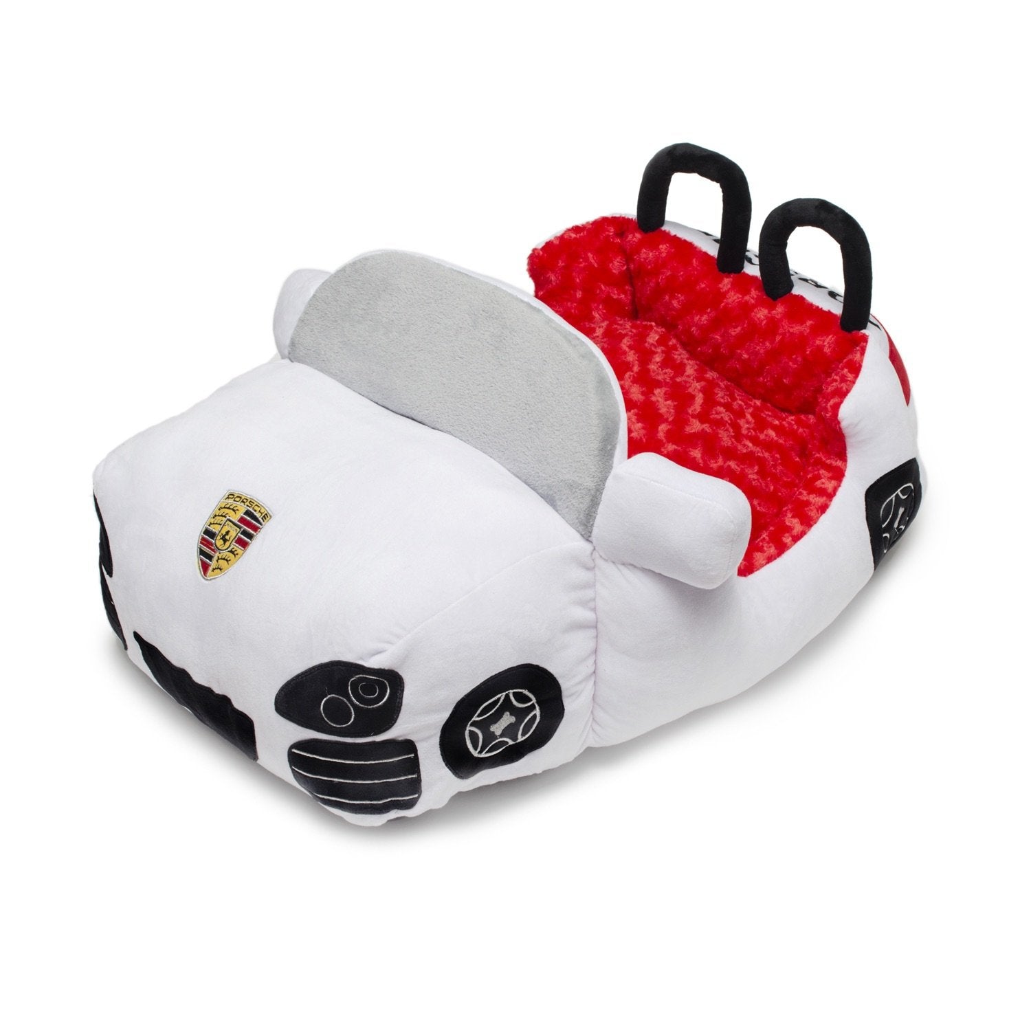 Each pet bed is carefully handcrafted to resemble a high-performance exotic car, complete with intricate stitching, bold headlights, and a sleek white exterior. The plush red interior offers your pet a spacious and cozy place to relax (18" x 22"), making it perfect for stylish naps or adorable photo ops!