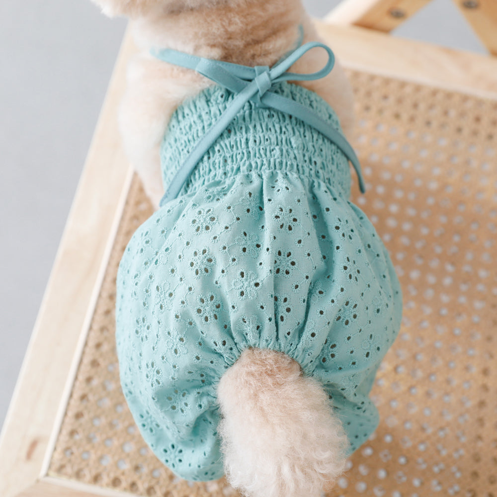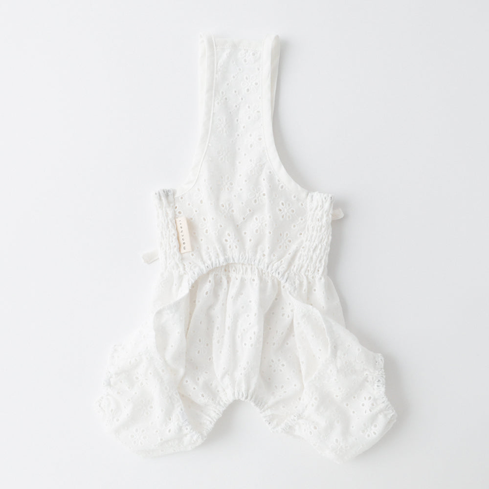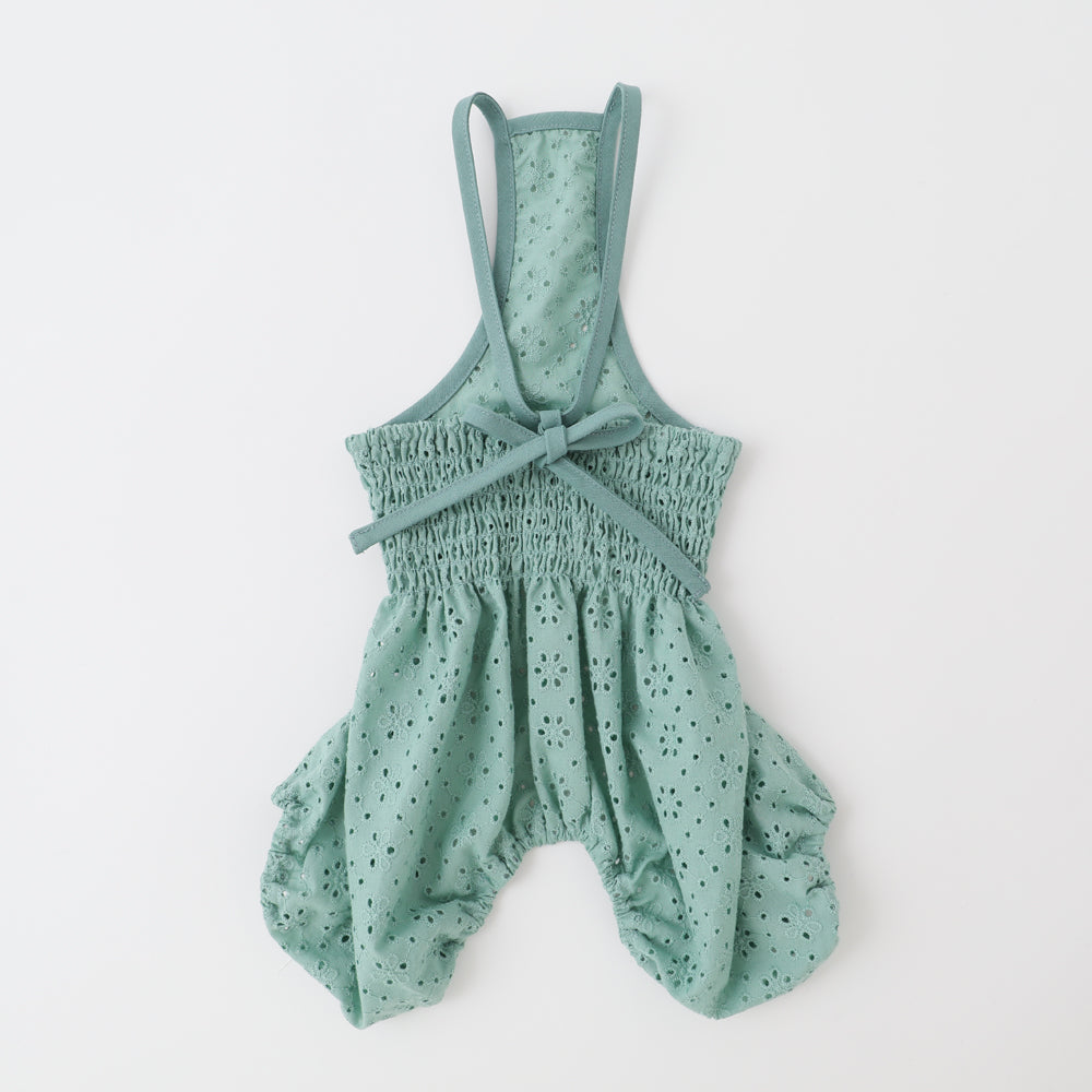 Salopette with a stylish flower embroidery cutwork race.