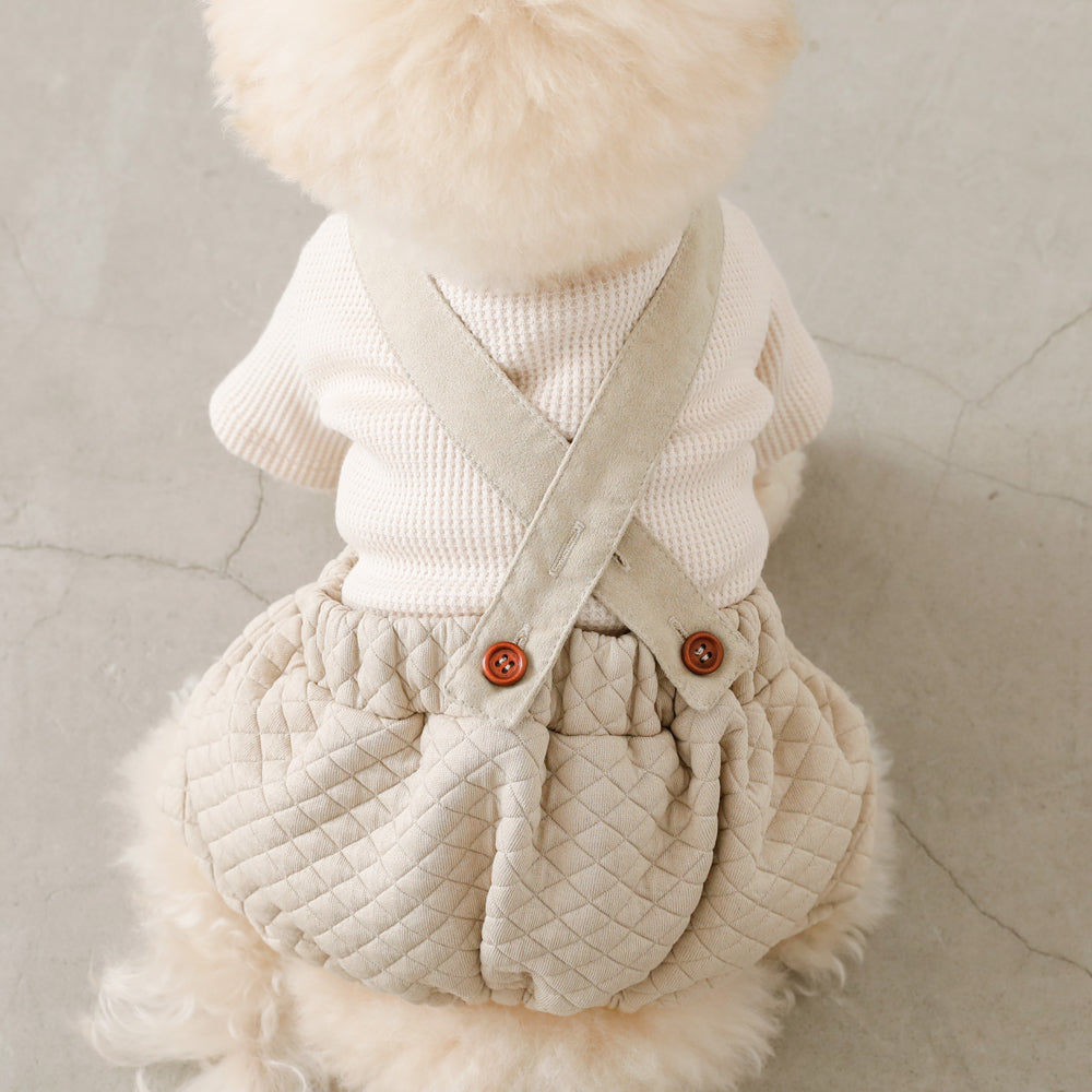 Pumpkin pants made of check pattern quilted fabric.