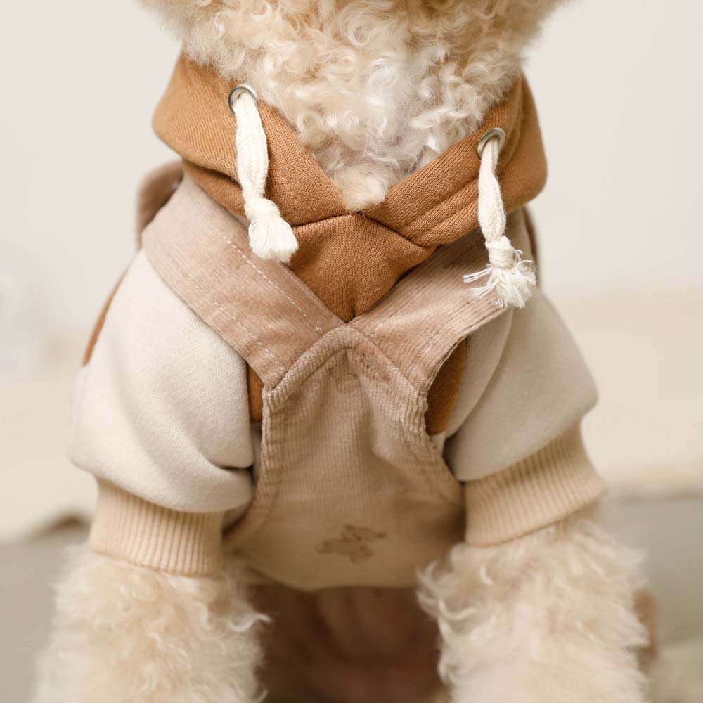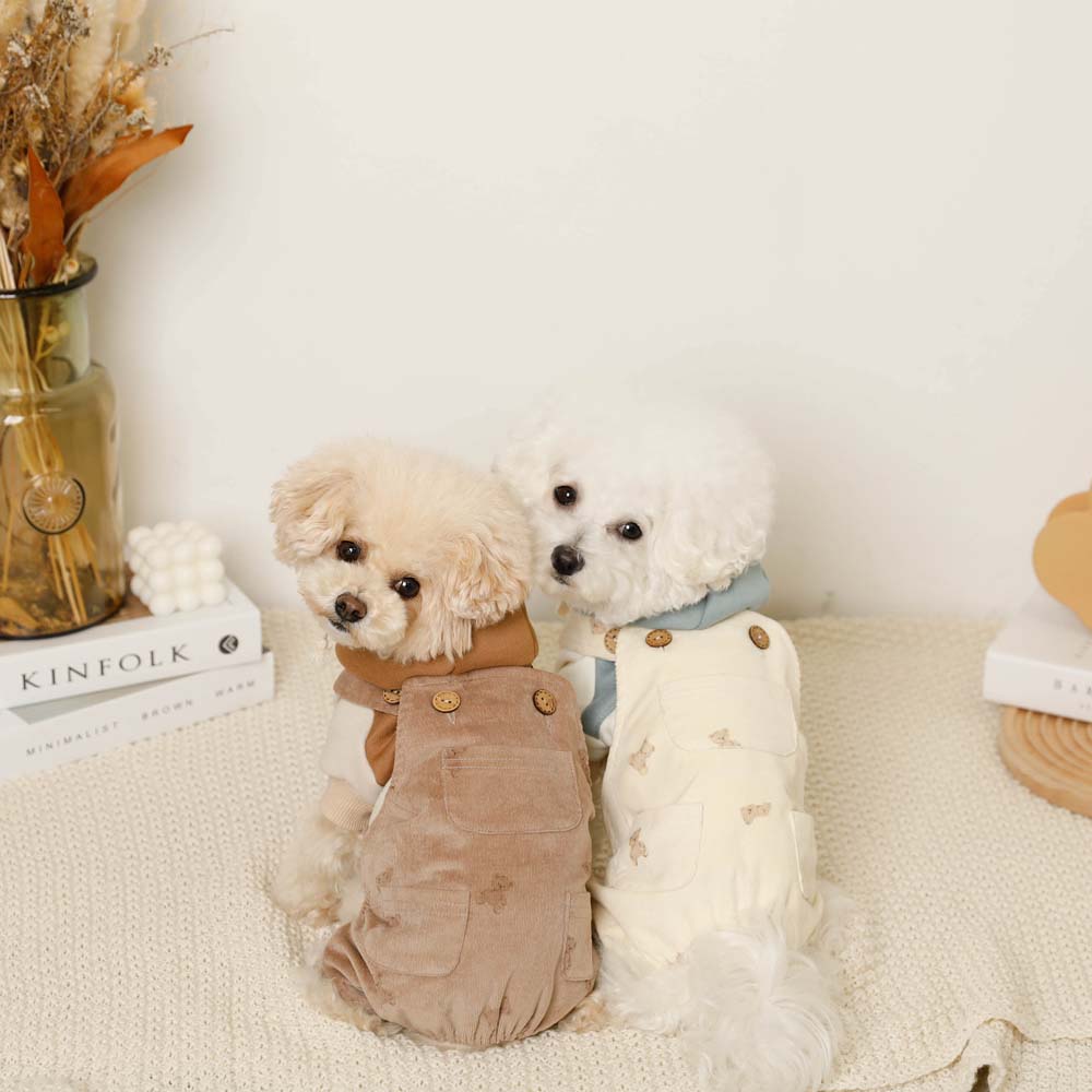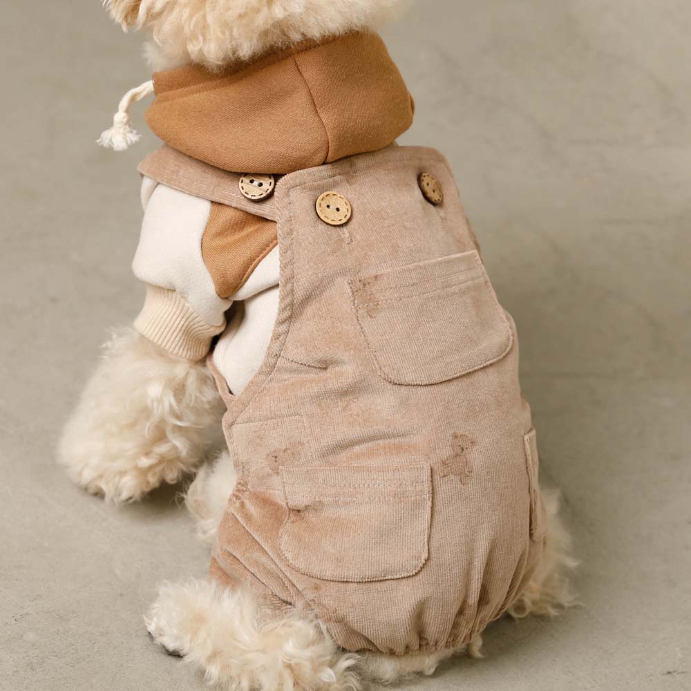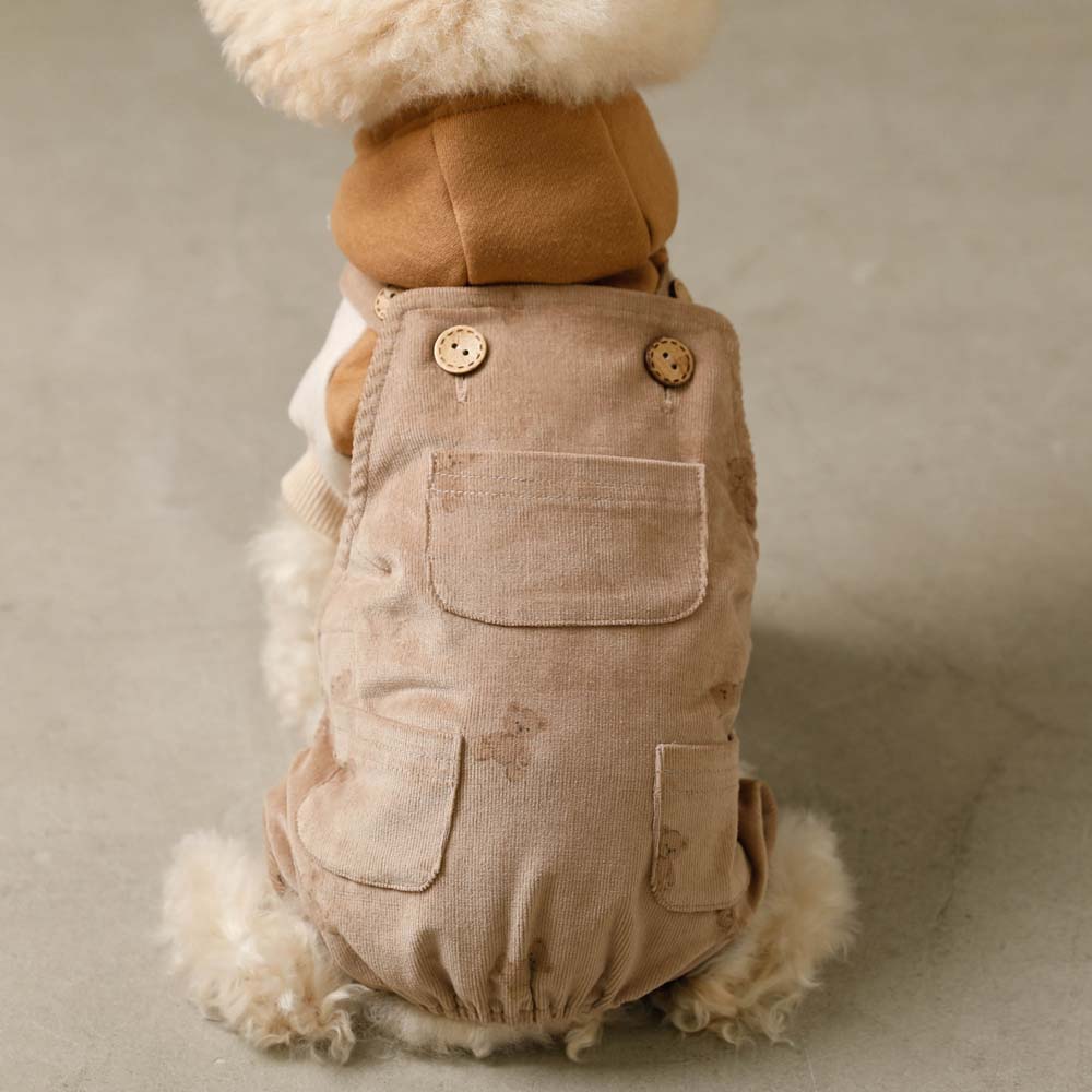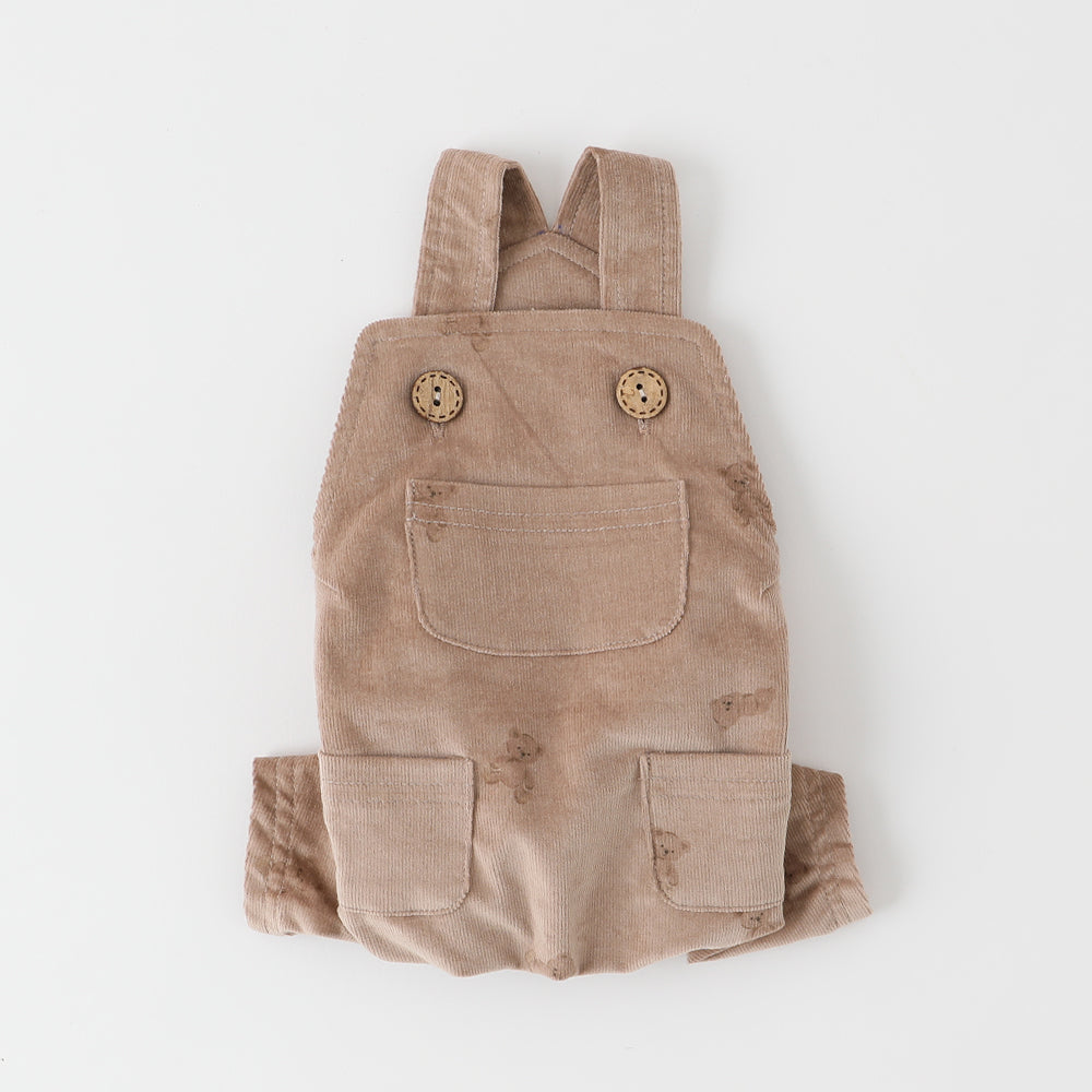 This is the appearance of a soft coloring MONCHERI original Kuma -san pattern corduroy overall.