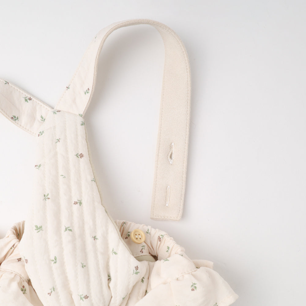 It is the appearance of a small flower pattern rompers with a feminine retro feeling!